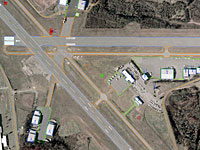 features such as the runway, airfield structures and